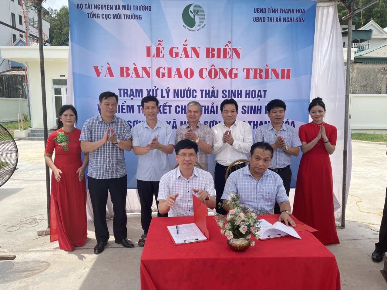 Nghi lễ gắn biến và bàn giao công trình Trạm xử lý nước thải cho UBND xã đảo Nghi Sơn