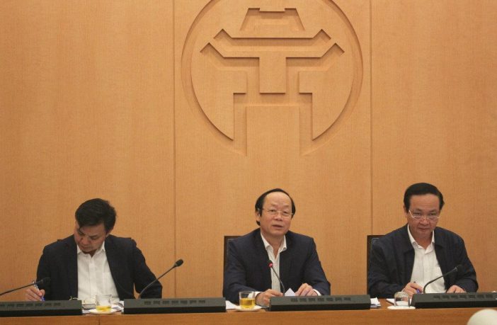 Ông Nguyễn Thế Hùng (ngồi giữa) – Phó Chủ tịch UBND TP Hà Nội phát biểu tại cuộc họp