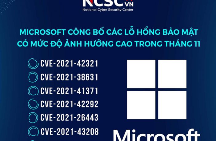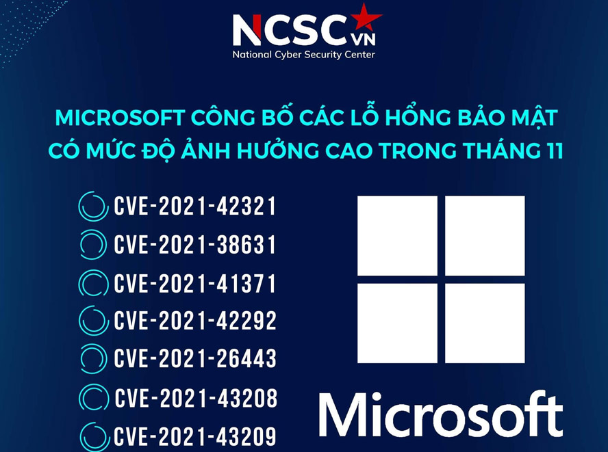 Trung tâm Giám sát an toàn không gian mạng quốc gia (NCSC), Bộ Thông tin và Truyền thông vừa đưa ra cảnh báo về các lỗ hổng bảo mật ảnh hưởng cao và nghiêm trọng trong các sản phẩm Microsoft công bố tháng 11/2021.