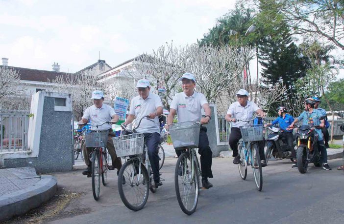 Lãnh đạo và sinh viên Đại học Huế đạp xe tuyên truyền về môi trường |