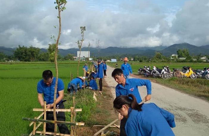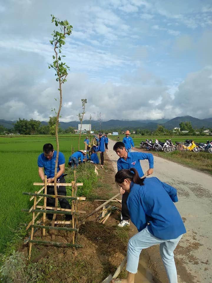 Đoàn viên thanh niên xã Thanh Hưng, huyện Điện Biên trồng cây hoa ban trên các trực đường liên xã và đường thôn, bản.