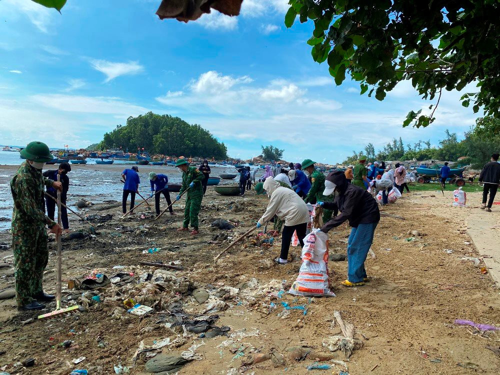 Để trả lại bãi biển sạch, hơn 500 người là lực lượng đoàn viên thanh niên, bộ đội biên phòng, cảnh sát biển hải đoàn 23 (Bộ Tư lệnh vùng Cảnh sát biển 2) cùng nhân dân đã ra quân góp sức thu gom, xử lý rác. Rất nhiều loại rác bị vùi lấp dưới lớp đất, cát cũng được cào xới, thu gom, cho vào túi để đưa đi xử lý tập trung.
