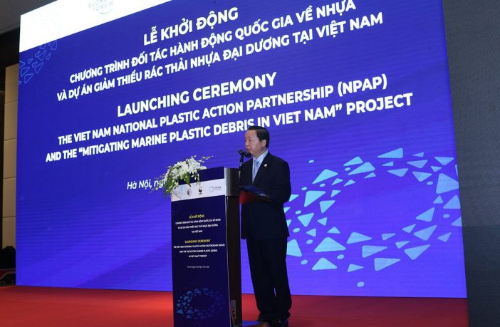 Bộ trưởng Trần Hồng Hà phát biểu tại Lễ khởi động Chương trình Đối tác Hành động Quốc gia về Nhựa \