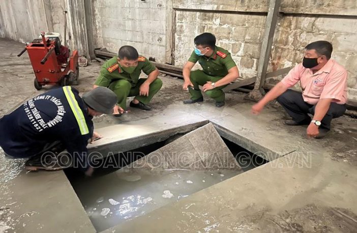 Trong ngày 21/4, Phòng Cảnh sát môi trường, Công an tỉnh Đồng Nai phối hợp với Phòng Kỹ thuật Hình sự và Cơ quan Cảnh sát điều tra Công an TP. Biên Hoà tiến hành khai quật hệ thống thoát nước mưa từ vị trí xay nghiền bóng đèn đến khu vực hầm bêtông chứa nước thải. Đồng thời, thực hiện cắt nền bê tông bên trong xí nghiệp ở vị trí nghi hầm chứa chất thải. Qua đó, phát hiện tại đây hầm chứa chất thải từ quá trình nghiền bóng đèn.