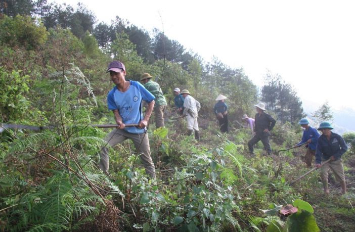 Người dân xã Tà Mung, huyện Than Uyên phát dọn thực bì phòng chống cháy rừng. |
