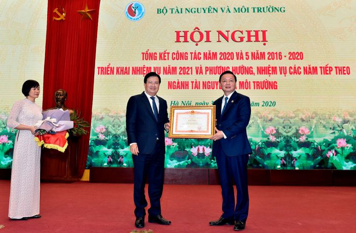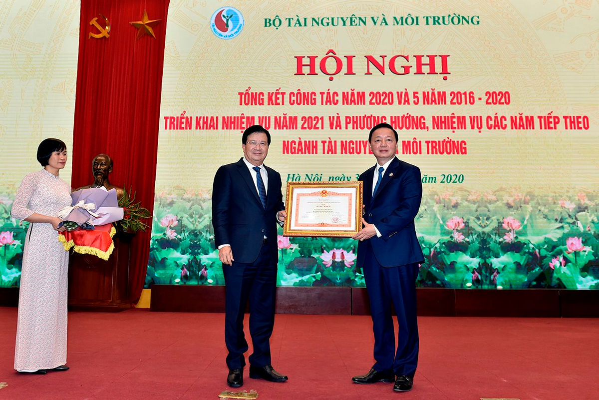 Phó Thủ tướng Trịnh Đình Dũng đã trao Bằng khen của Thủ tướng Chính phủ cho Bộ Tài nguyên và Môi trường vì đã có thành tích trong công tác năm 2019, góp phần vào sự nghiệp xây dựng Chủ nghĩa xã hội và bảo vệ Tổ quốc