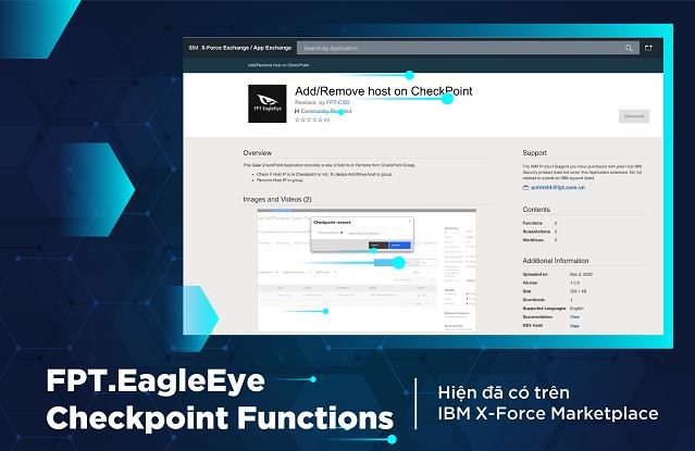 Giải pháp lĩnh vực an ninh mạng FPT.EagleEye Checkpoint Functions for IBM Resilient do Trung tâm An ninh mạng FPT phát triển đã trở thành sản phẩm bảo mật đầu tiên của Việt Nam được chấp thuận và chính thức được đăng tải trên IBM X-Force Marketplace.