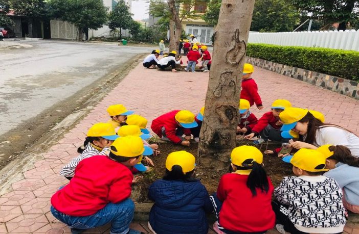 Các cháu được cô giáo dạy về cách chăm sóc và bảo vệ cây