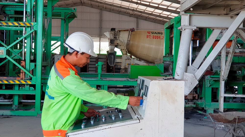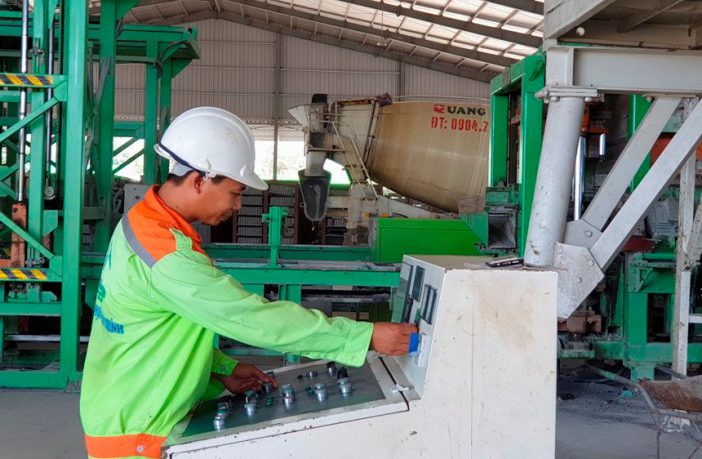 Công nhân vận hành dây chuyền sản xuất gạch không nung |